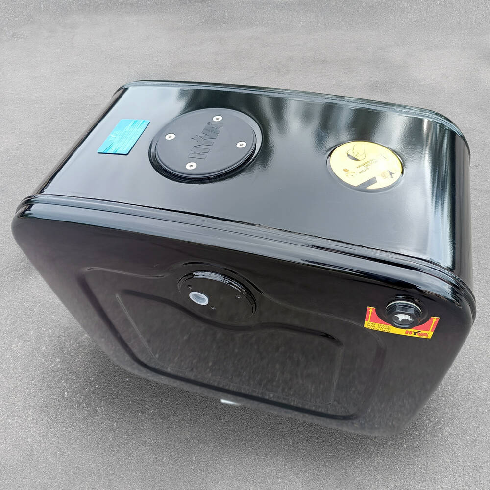 Гидравлический бак бокового монтажа с двойной опорой SM-155L/129L-MP-MR Hyva имеет объем 155 литров, с рабочим объемом 129 литров. Бак оптимально защищен от воздействия коррозии внутри и снаружи. Порошковое покрытие обеспечивает защиту от неблагоприятных воздействий окружающей среды. Все баки очищаются, а затем испытываются под давлением для проверки на утечки.