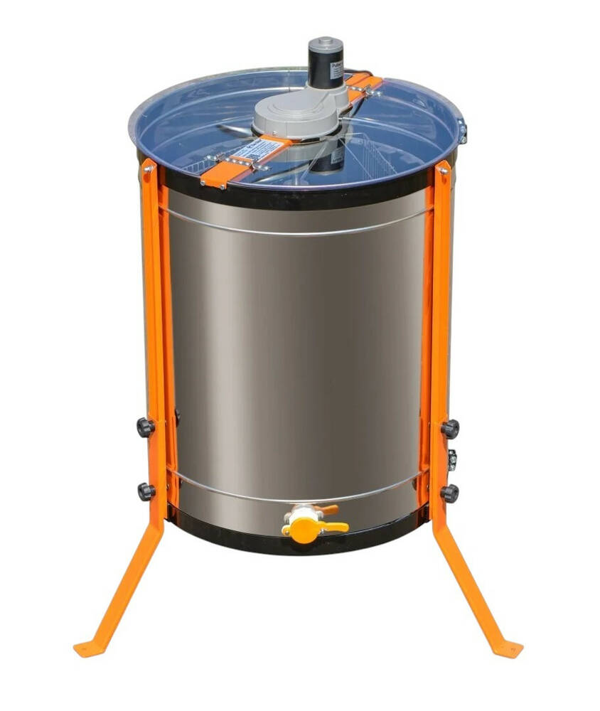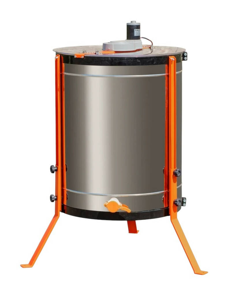 Автоматическая комбинированная медогонка МРК-24/3 12/220В предназначена для начинающих пчеловодов, а также для небольших и средних пасек от 10 и более пчелиных семей. Данная модель сочетает в себе два типа медогонок: хордиальную и радиальную. Главным преимуществом этой модели является возможность откачивать рамки всех видов: Дадан (300), Рута (230), магазинные (145), Украинские (320) — двумя способами: радиальным и хордиальным. Всё зависит от вашего выбора, что становится возможным благодаря лёгкому снятию и установке кассет. По весу и размерам медогонка очень компактна и удобна для использования и перевозки в легковом автомобиле. Три ножки быстро откручиваются благодаря резьбовым болтам с пластиковыми ручками. Поднять, перенести и загрузить её без труда сможет один человек. Медогонка универсальна, так как может использоваться как на стационарных, так и на кочевых пасеках, имея питание как от сети 220В, так и от 12В. Мощность двигателя составляет 0,1 кВт.