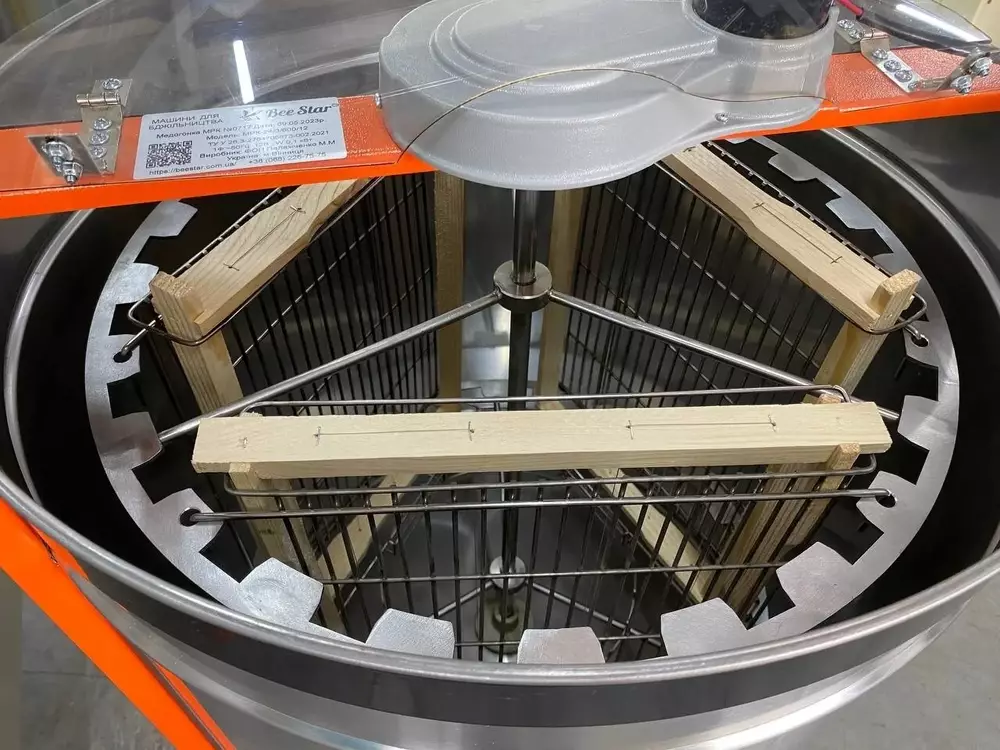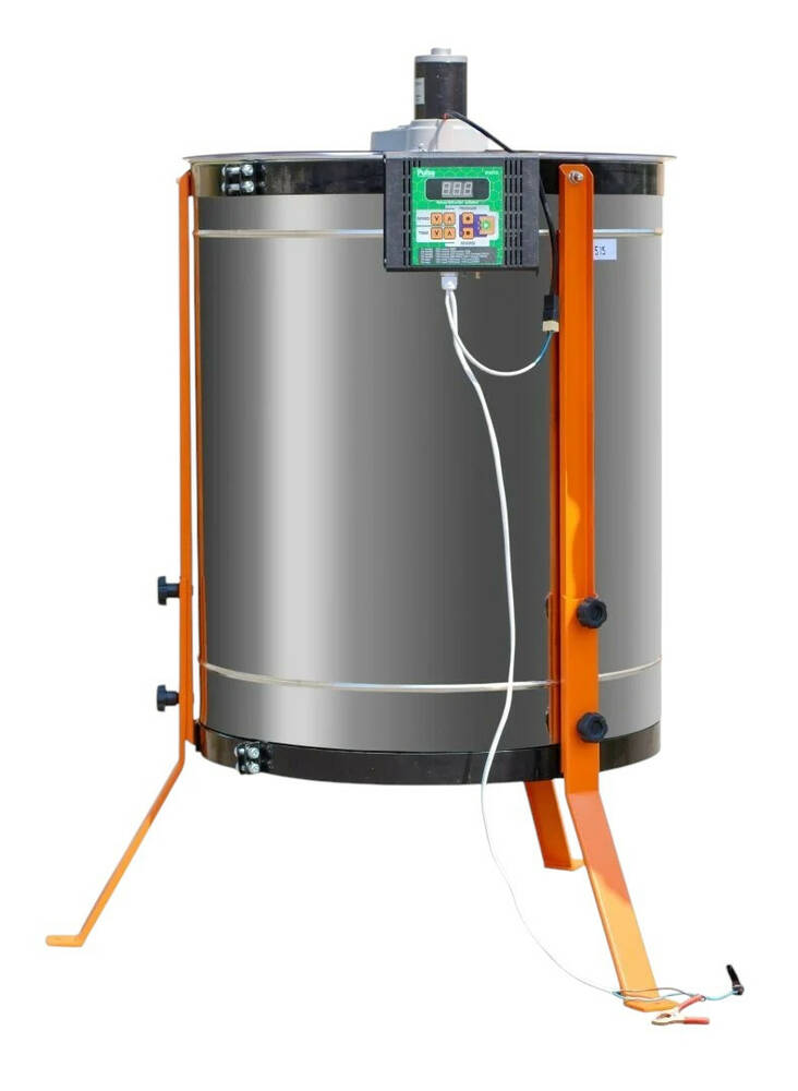 Также установлен пульт управления «BeeStar» с 6 записанными автоматическими программами, которые можно редактировать (редактируется любая из 6 программ, инструкция по настройке и характеристики стандартных программ описаны в паспорте к медогонке). Стандартно в пульте записано 4 программы для кассетного типа откачки и 2 для радиального. Программы отличаются скоростью и временем откачки.