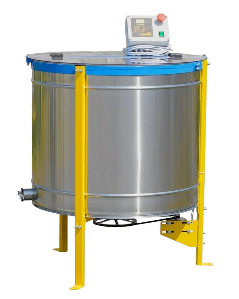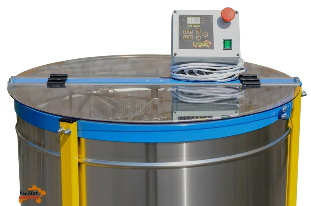 Медогонка работает от двигателя 12 В с плавным регулированием оборотов. Пульт управления оснащён 6 программами и ручным режимом:
