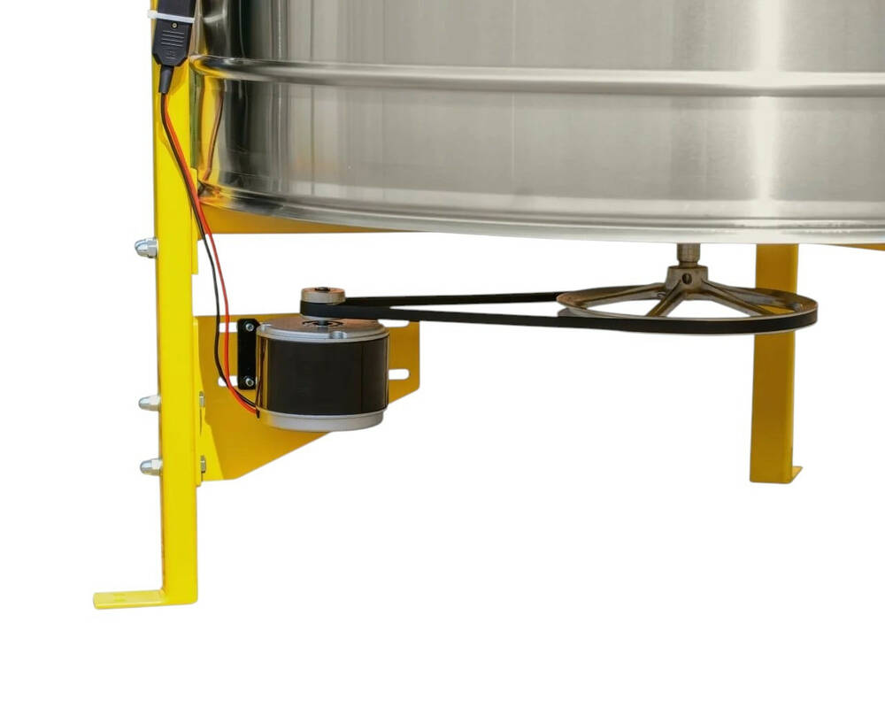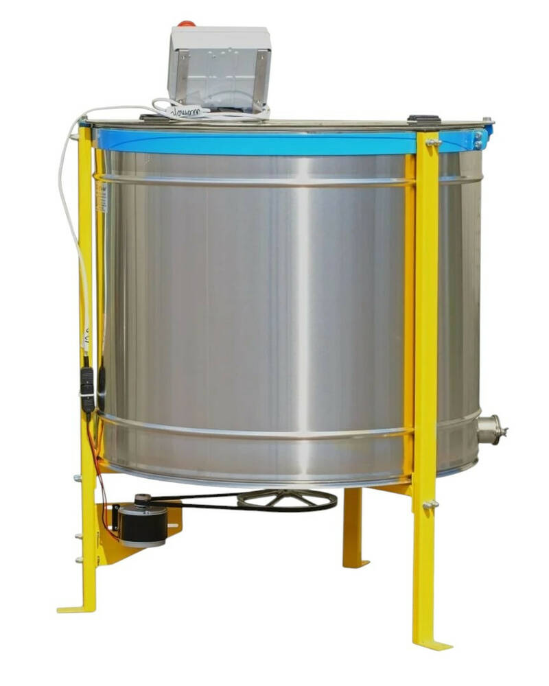 В медогонке установлен комбинированный ротор на 28 рамок для радиальной откачки и 4 неподвижные быстросъёмные кассеты на 300 мм под рамку Дадан — для хордиальной.