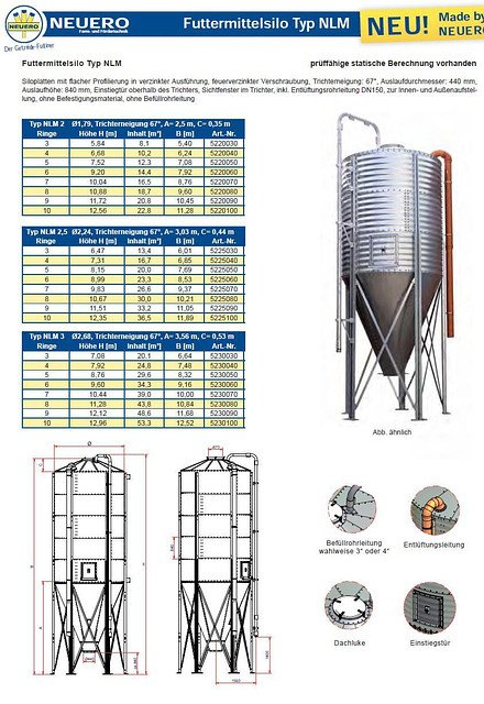 Немецкая компания Нойеро рада представить на рынке Украины новый металлический силос с воронкой 67˚, который разработан инженерами немецкой компании "Neuero Farm- und Fördertechnik GmbH" специально для сыпучих продуктов с насыпным весом до 650 кг/куб.м.