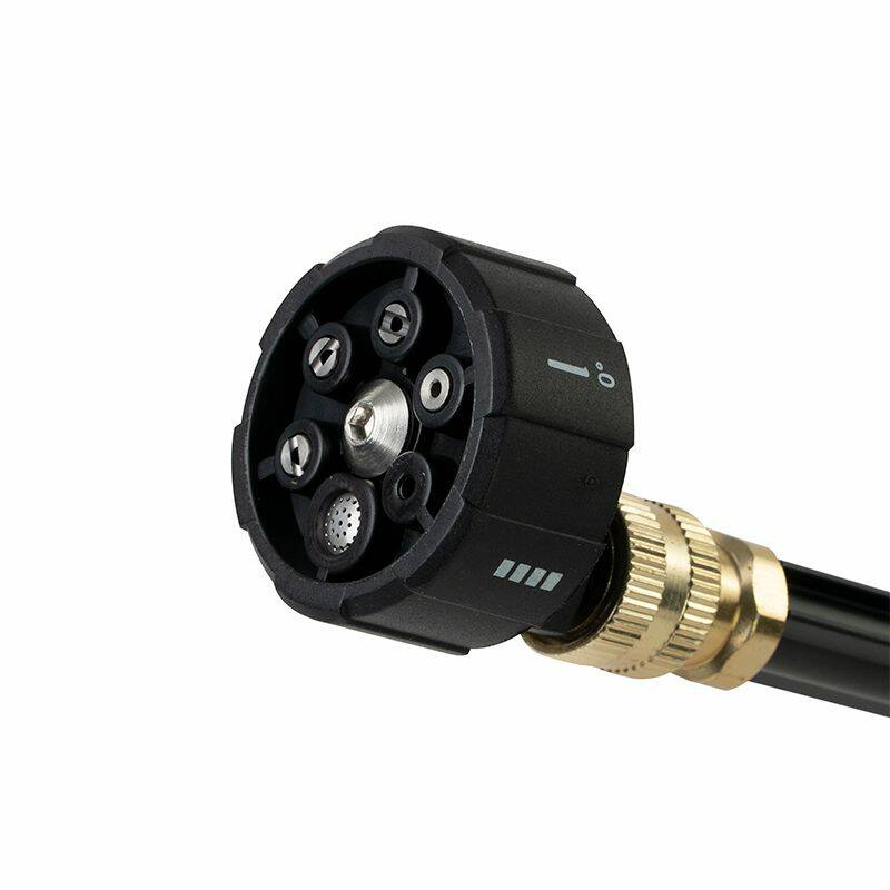 • Багатоструменева насадка 6-в-1 дозволяє швидко перемикатися між різними режимами струменя для виконання широкого спектра завдань – від миття автомобілів до очищення брудних поверхонь.
