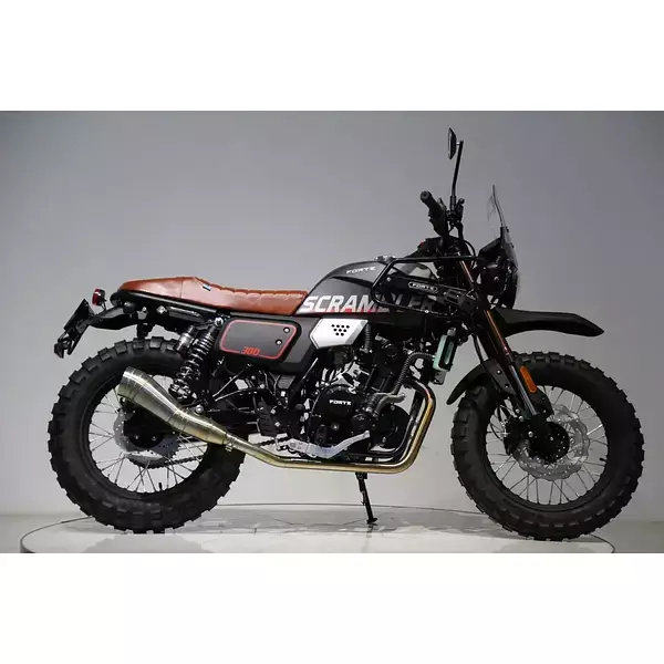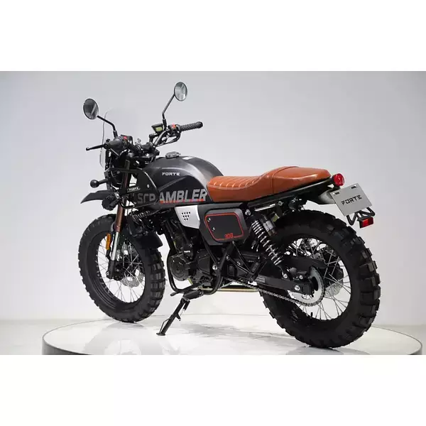 Мотоцикл Forte Форте Scrambler FT300-F6P - Особливості: Двигун з балансуючим валом Передні та задні гідравлічні дискові гальма з вентиляцією Новий дизайн спідометра та тахометра Задня підніжка для пасажира Сучасні легкосплавні диски Електронна панель приладів Двигун 285см3, NSR300CC, 21 кВт/29 к.с. при 8000 об/хв КПП 6-ступінчаста Обтічник повітря Характеристики: Максимальна швидкість 145 км/год Задні гальма Дискові з вентиляцією Задні шини 140/80-17 Кількість циліндрів 1 Потужність 29 к.с. Потужність двигуна 21 кВт Об'єм двигуна 285см3 Об'єм паливного бака 16л Охолодження Водяне Передні гальма Дискові з вентиляцією Зчеплення багатодискове, в масляній ванні Система змащення тиском, мокрий картер Система живлення карбюратор Передні шини 110/90-17 Виробник Forte Країна виробник Китай Тип двигуна Чотиритактний Тип харчування Бензин Тип старту Електростарт Колір Чорно ЗАГАЛЬНІ ДАНІ ДхШхВ (мм) 2100 х 800 х 1380 Колісна база (мм) 1360 Дорожній просвіт (мм) 260 Висота по сидінню (мм) 820 Суха вага (кг) 138 Паливний бак (л) 16.