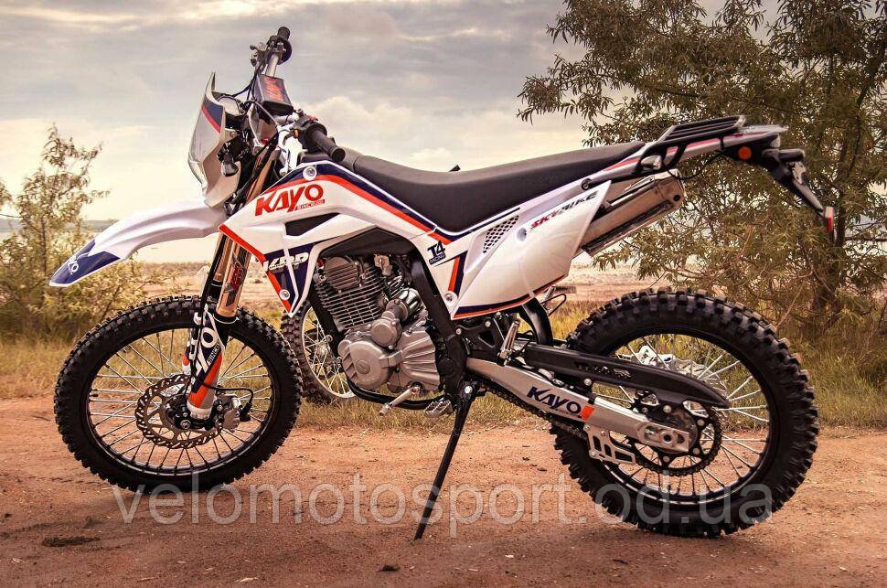 Телефоны для заказов : 093-100-95-92;068-551-71-04;095-758-06-52- Мотоцикл KAYO T4 2020 - можно назвать старшим братом одного из самых популярных в линейке мотоциклов КАЙО - мотоцикла Т2. Он уже больше подходит для начальных этапов соревнований по мотокроссу.Надежность и качество всех мотоциклов компании КАЙО подтверждаются уже довольно долгим сроком продаж, отзывы про мотоциклы T4 легко найти в интернете. Легкосплавные спицованные диски с размерами ободов 1,6*21 и 2,15*18, внедорожная резина YUANXING размерами 80/100-21 и 110/90-18 не допустят промахов на бездорожье даже на самыч сложных участках. Наличие буксаторов только поможет в этом.В KAYO T4 2020 года выпуска установили обновленную панель приборов, полностью электронную, такую же, как и на мотоциклах KAYO серии К. Как и в прошлогодней версии мотоцикла, установлена задняя звезда увеличенного размера. С 2020 года на мотоцикл установливается 1 цилиндровый, 4-х тактный двигатель воздушного охлаждения с верхним распредвалом, мощностью 20,4 л.с., объемом 249 см.куб. ZONGSHEN ZS172FMM. ТЕХНИЧЕСКИЕ ХАРАКТЕРИСТИКИ: