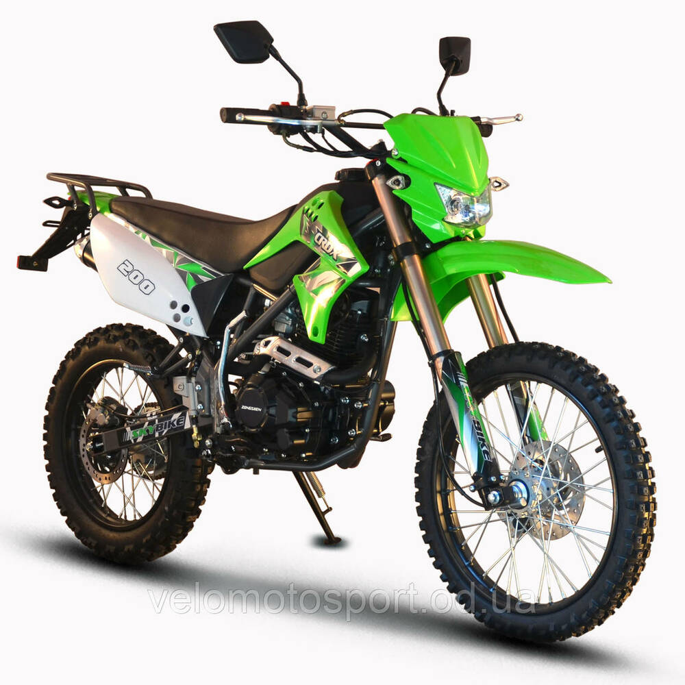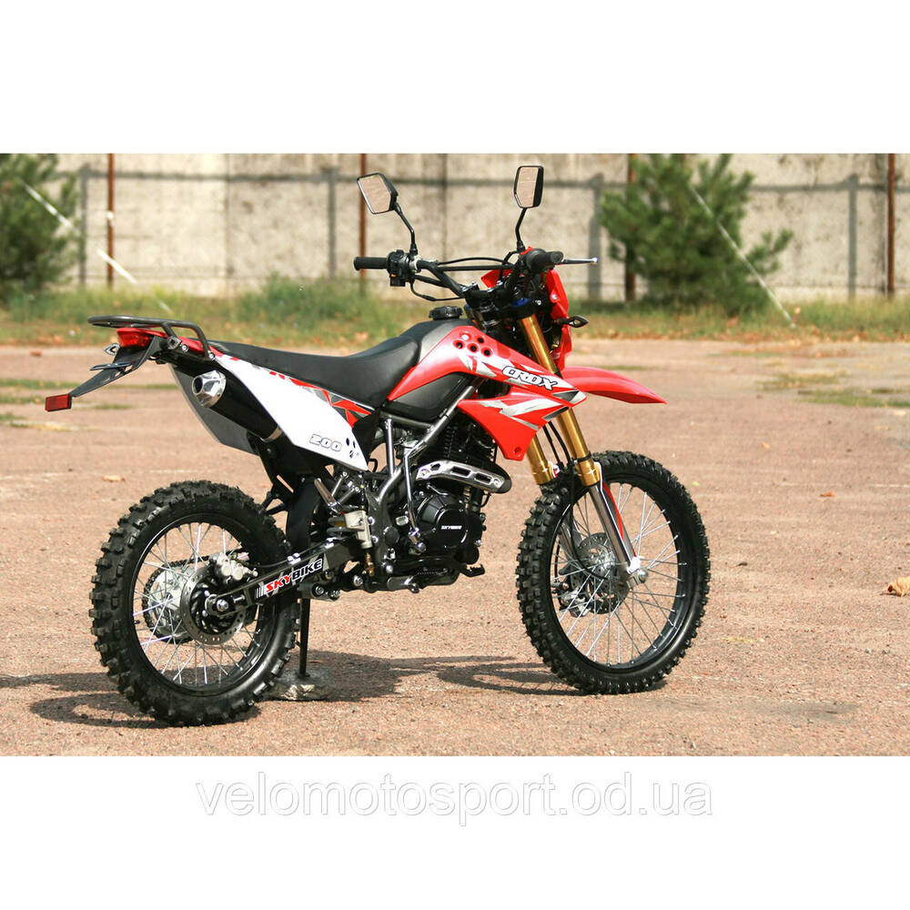 Мотоцикл Skybike CRDX-200 куб. - отлично подойдёт любителям активного отдыха - легкий, экономичный, отличается простотой и, как следствие, надёжностью. Мощный и приемистый двигатель CG-200 с нижним расположением распредвала производства компании ZONGSHEN с объемом 196,4 куб.см. расходует всего 2,4 литра горючего на 100 километров пути. Бак пластиковый, ёмкостью 5,5 л. Большой дорожный просвет (клиренс), небольшой собственный вес и достаточно низкая высота посадки. ХАРАКТЕРИСТИКИ:
