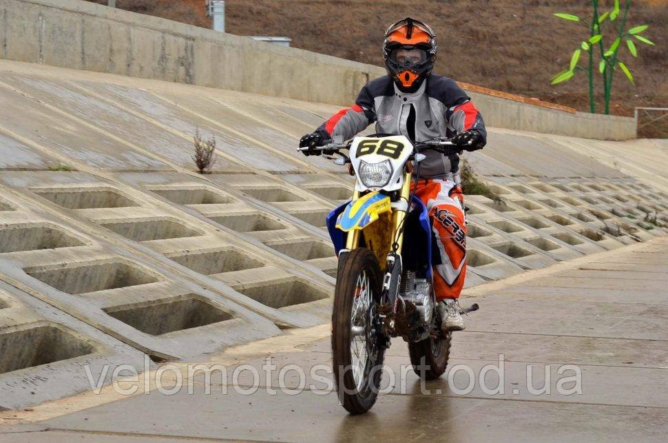 Телефоны для заказов : 093-100-95-92;068-551-71-04;095-758-06-52; Мотоцикл SKYBIKE MZK 250 (ENDURO) - Агрегатирован мотоцикл двигателем ZS172FMM-3A (CB250-F), производства компании ZONGSHEN, обьемом 249 куб.см., мощностью 20,5 л.с., верхневальный, без балансировочного вала. Ход поршня 61,4 мм, диаметр поршня 72 мм., зажигание электронное. Запуск двигателя возможен как с помощью электростартера, так и при севшем аккумуляторе, предусмотрена возможность завести его лапкой кик-стартера. На мотоцикле использованы спицованные колесные диски с алюминиевыми ободоми, размером 1,6-21 и 2,15-18, на которых установлена внедорожная резина 80/100-21 спереди и 110/90-18 сзади. Обода и переднего и заднего колеса оборудованы буксаторами. При колесной базе 1490 мм минимальный радиус разворота составляет 2300 мм. Достаточно динамичный мотор при соотношении ведущей и задней звезд 13-49 позволяет разгонять мотоцикл до максимальной скорости 95 км/час. ТЕХНИЧЕСКИЕ ХАРАКТЕРИСТИКИ: