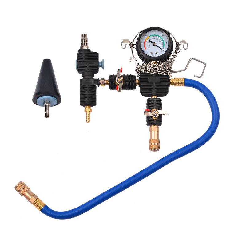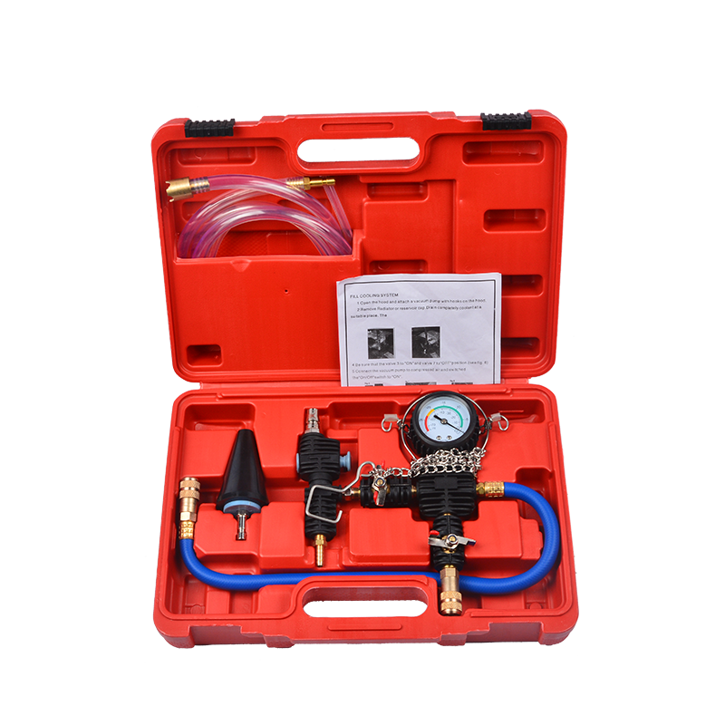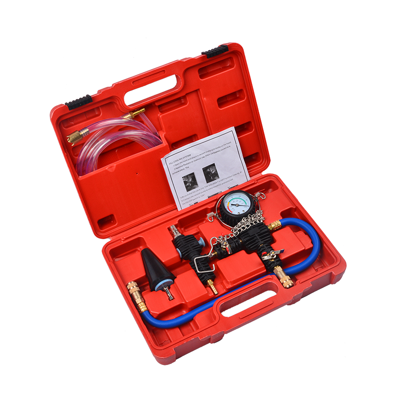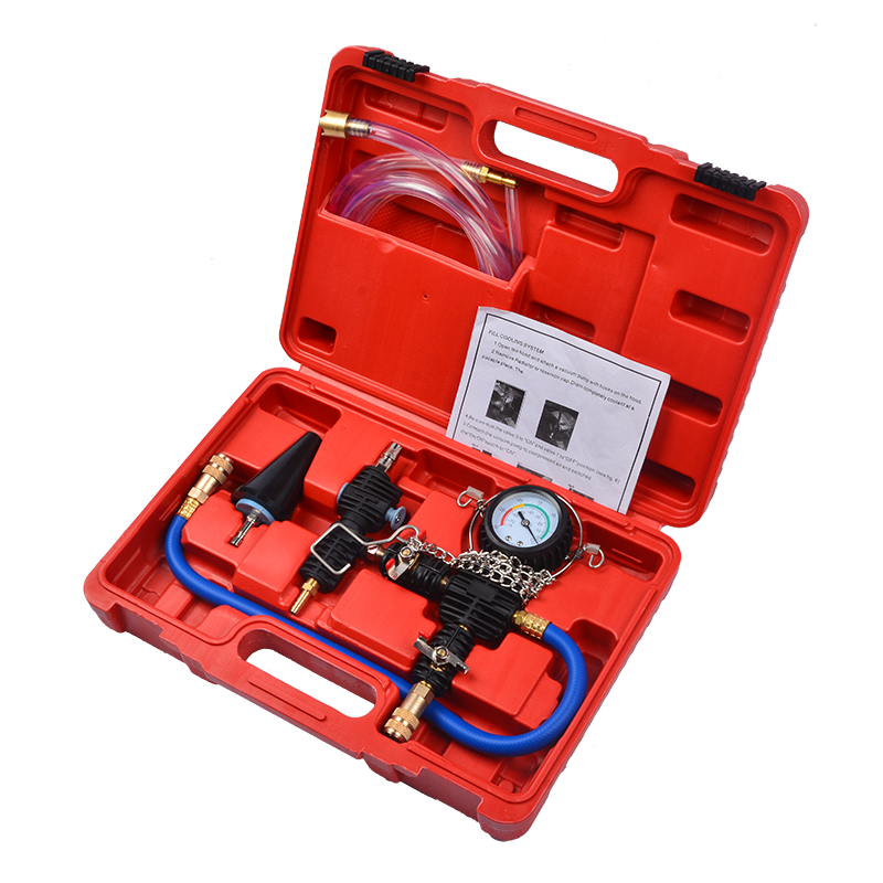 Набор предназначен для полного извлечения воздуха из системы охлаждения и быстрого заполнения ее новым антифризом. Благодаря созданию вакуума исключается образование воздушных пробок, что гарантирует стабильную работу двигателя и надежную циркуляцию охлаждающей жидкости.