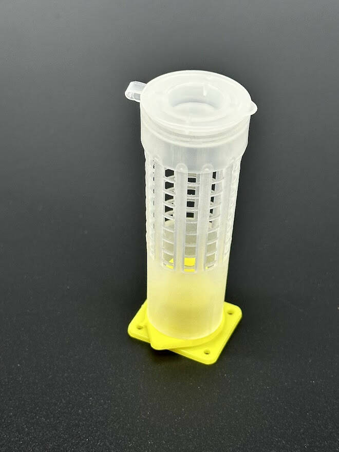Мисочка: Мисочка выполнена из прочного и прозрачного пластика, что позволяет легко отслеживать развитие яиц и личинок. Ее конструкция обеспечивает удобное размещение и отличные условия для роста и развития маток, благодаря продуманному дизайну, который минимизирует риск повреждений и загрязнений.