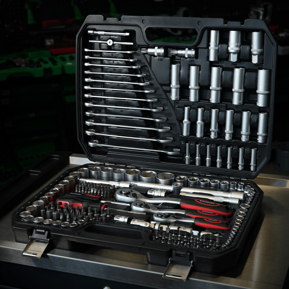 Преимущество набора – полная универсальность: удобен как для автосервиса, так и для домашней мастерской.
