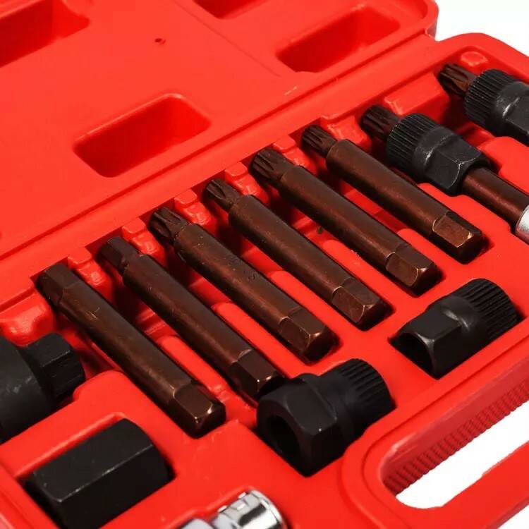 Обеспечивает легкий ремонт генератора и разборку ременного шкива. Компоненты комплекта изготовлены из Cr-V стали.
