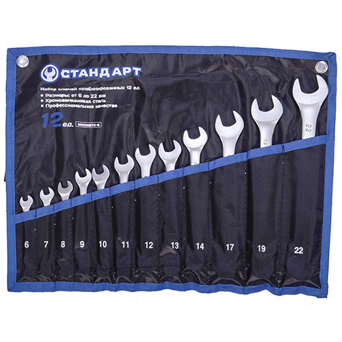 Набор ключей комбинированных 6-22 мм 12 шт в чехле СТАНДАРТ NKK12STE-S (6-14,17,19,22)