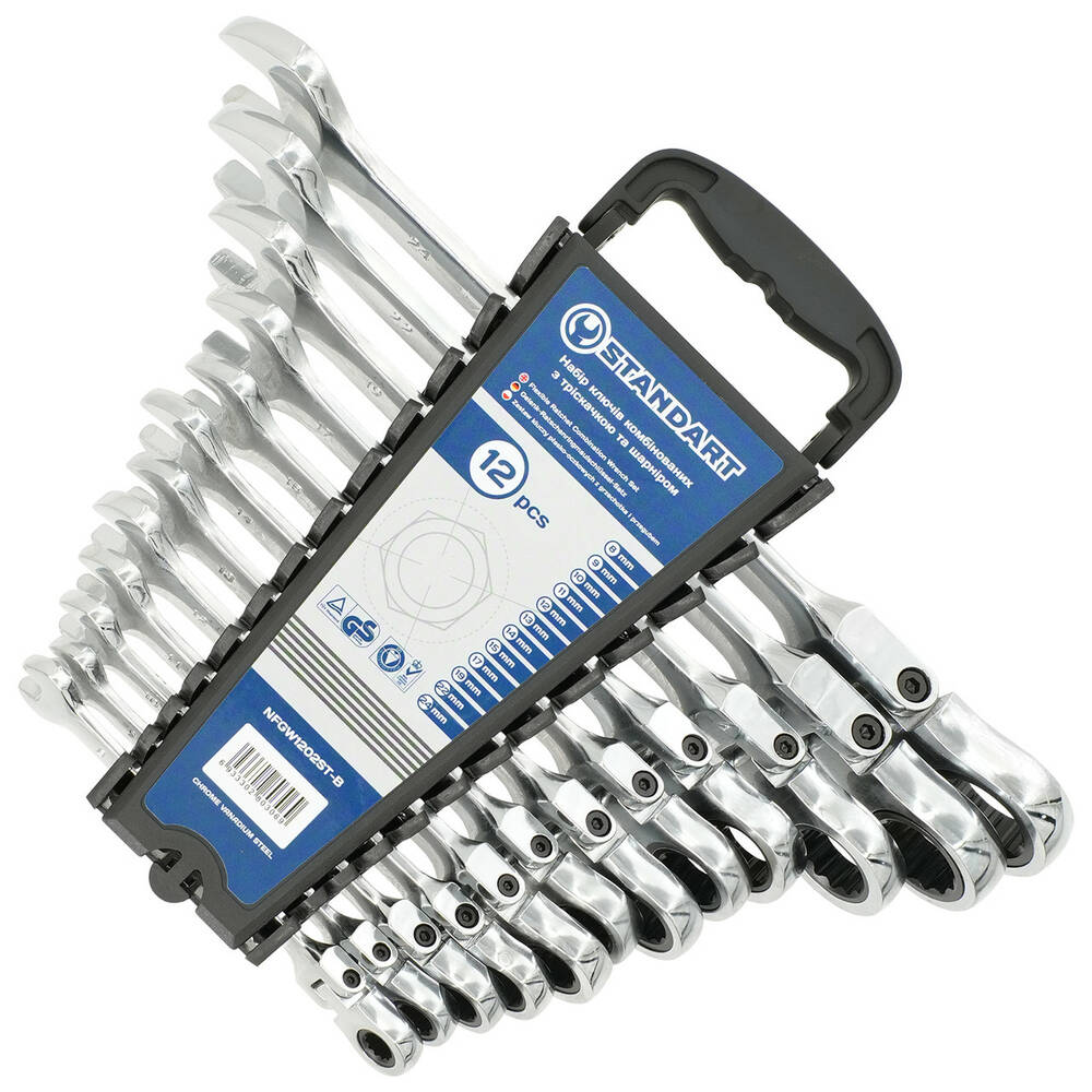 Набор ключей комбинированных с трещоткой и шарниром 8-15,17,19,22,24мм 12ед. на холдере СТАНДАРТ NFGW1202ST-B