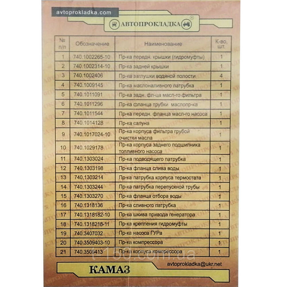 Набор прокладок двигателя КамАЗ-4310/5320/5511, полный с РТИ силикон