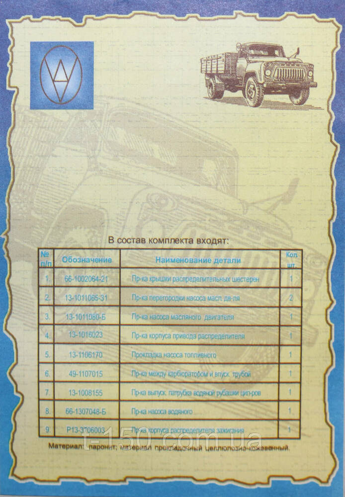Набор прокладок двигателя ГАЗ-53/3307, малый паронит