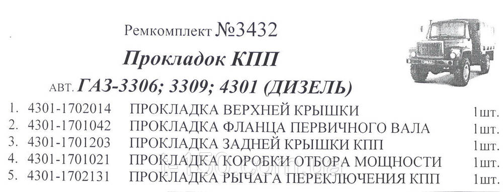 Набор прокладок КПП ГАЗ-3306/3309/4301, картон