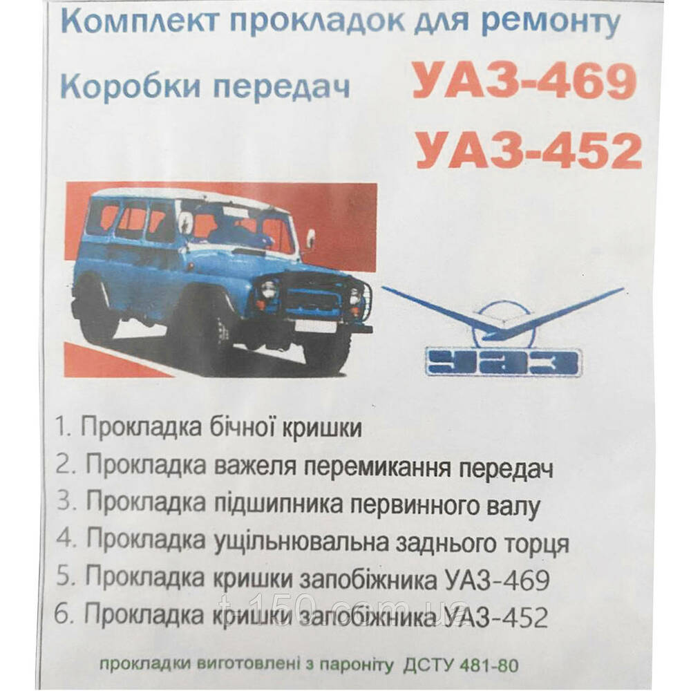 Набор прокладок КПП УАЗ-452/469 паронит