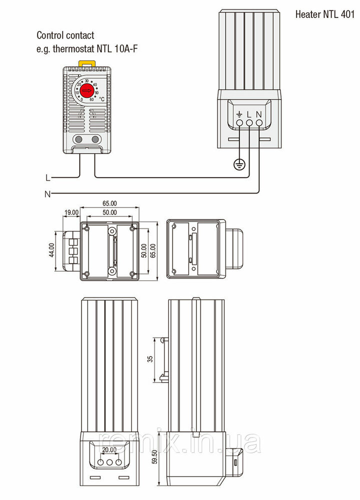 Нагреватель с вентилятором для электрошкафа NTL401-250W