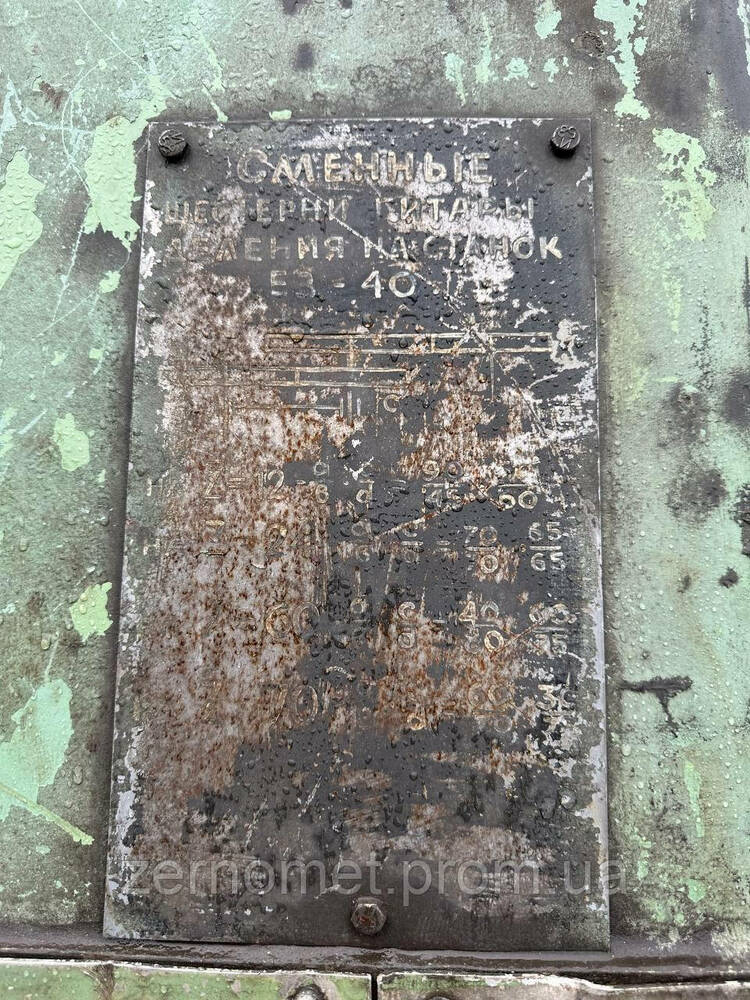 Верстати моделі ез-40 призначені для чорнового нарізування зуб'їв прямозубих циліндричних та конічних коліс. Працює методом одиничного розподілу Найбільший діаметр оброблюваної деталі, мм 315 Найбільший модуль зубчастих коліс, що обробляються. Потужність, кВт: 5,5 Розміри (Д_Ш_В), мм: 2405_1385_2155 Маса верстата з виносним обладнанням, кг: 6500