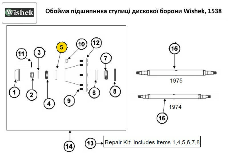 Зовнішня обойма підшипника ступиці дискової борони Wishek, 1538