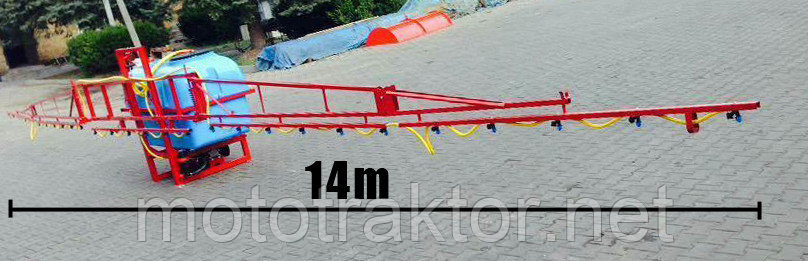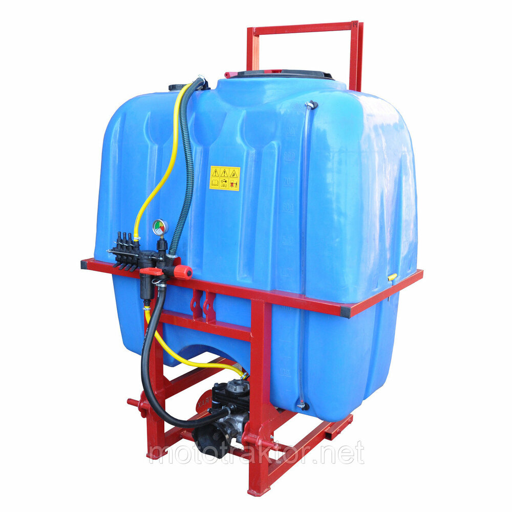 Резервуар для раствора, установленный в закрытую раму с раскидными штангами, удерживающие армированные шланги, с подсоединенными форсунками, идущие от распределителя с высокоточным глицериновым манометром. Подача жидкостей происходит за счет насоса, приводящегося в работу от вала отбора мощности. Имеет четырехступенчатую систему фильтрации. Агрегатируются с тракторами от 15 до 50 л.с., в зависимости от объема бака.