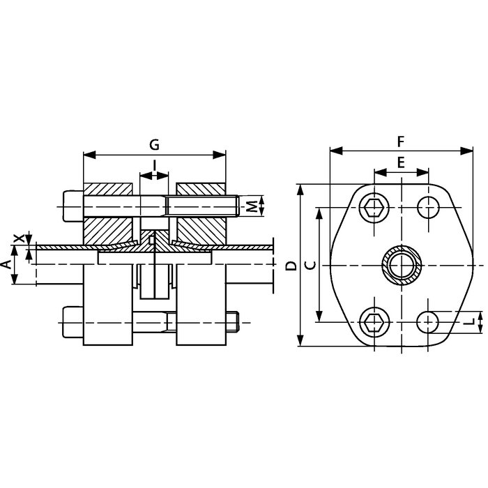 | BFK 403-30-5 | 400 | 1" | 30 mm x 5 mm | 57.2 | 81 | 27.8 | 71 | 85 | 17.4 | 13 | (4 шт.) M 12 x 70 |