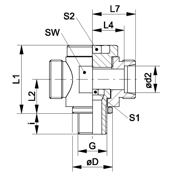 Откидное резьбовое соединение, бездроссельное, T-образное - XDTM VA