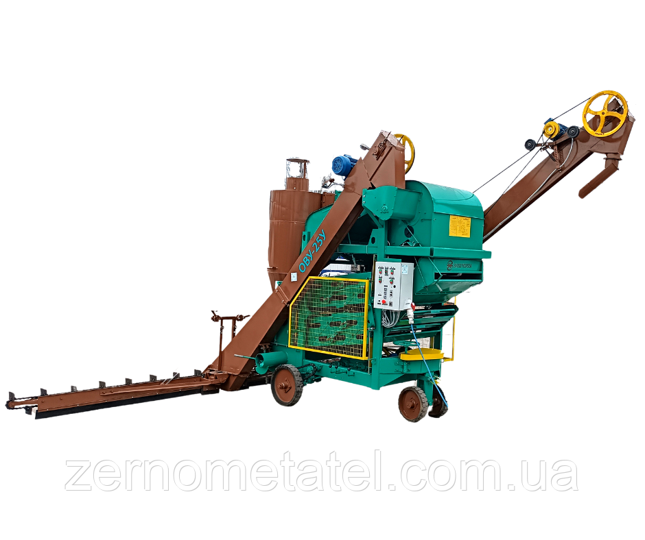 Ефективним сільськогосподарським обладнанням для збирання купи соняшнику, сорго, кукурудзи та інших зернових культур є очищувач ОВУ-25 з подовженою вивантаженням. Обладнання здатне здійснювати вивантаження в кузов з висотою бортів до 3 метри. Машина самостійно пересувається і при цьому завантажує себе зерном. Для очищення зерна використовується регульований потік повітря.