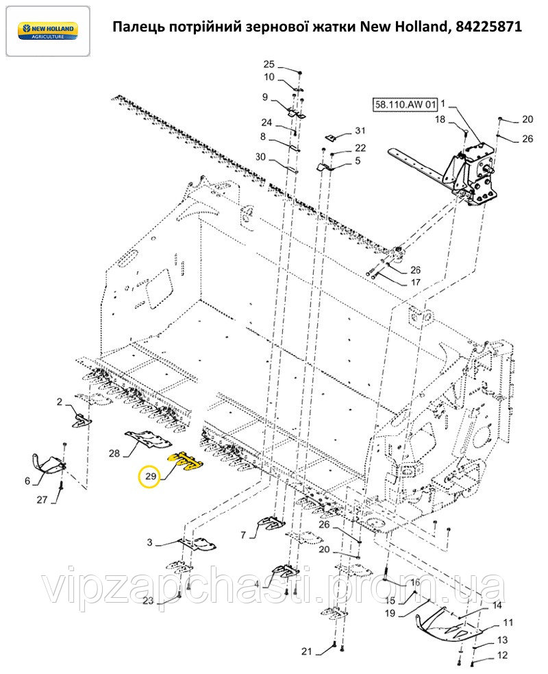 Палец тройной зерновой жатки New Holland 740CF, 84225871