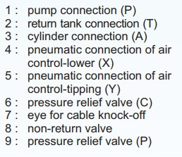 - напор до 220 л / мин - ограничивает падение давления в направлении от насоса к цилиндру, от насоса к масляному резервуара и от цилиндра к масляному резервуара. Падение давления может нанести повреждений насоса, шланга или уменьшить рабочий ресурс системы. Высокое значение разрешенного напора масла уменьшает время разгрузки, что имеет важное значение для пользователя. Уменьшение времени разгрузки не только увеличивает эффективность использования транспортного средства, но и минимизирует время опасной работы, связанной с поднятием и опусканием перекидного корпуса. Во время разгрузки, возможна опасность потери устойчивости транспортного средства, например, через неравенство почвы, или сильный боковой ветер