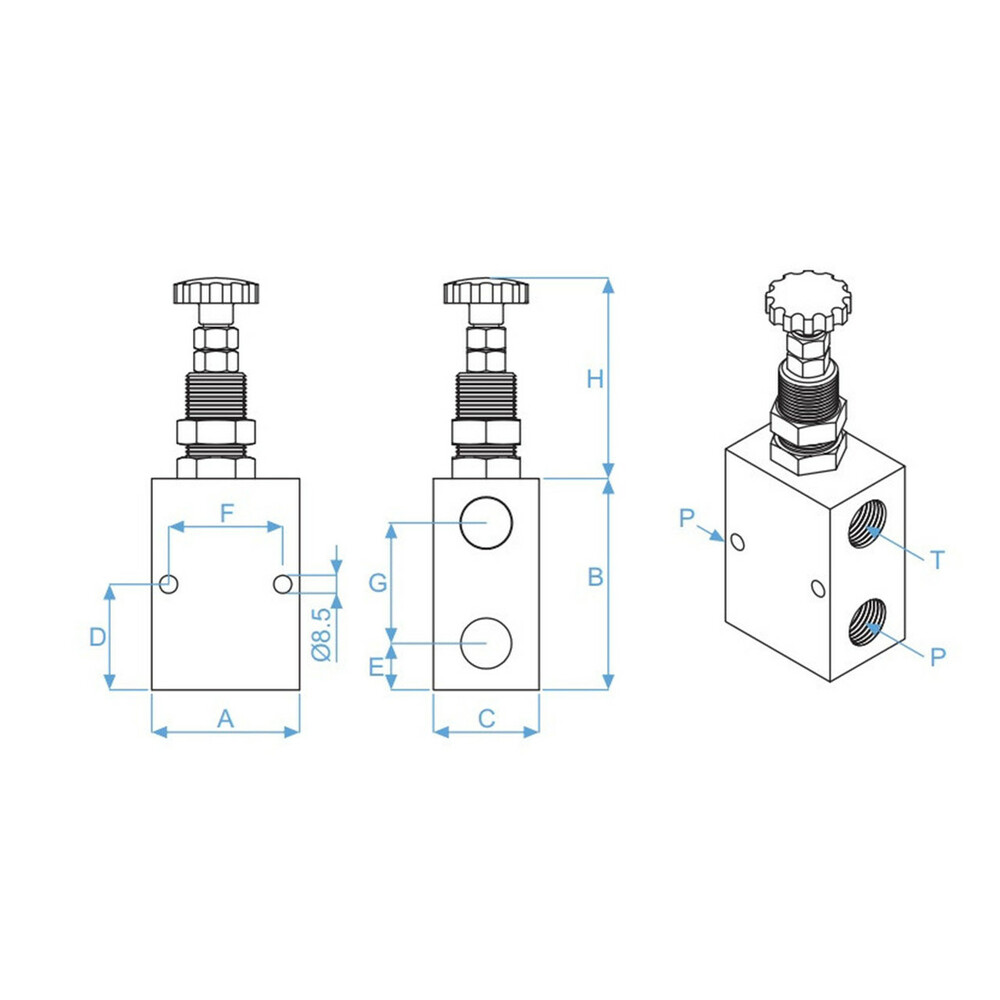 - патроны для настройки максимального рабочего давления. Типичные клапаны оборудованы зажимными винтами, которые регулируют максимальное рабочее давление. Водители часто регулируют давление, для увеличения подъемной силы цилиндра (перегрузки). В результате цилиндр может получить повреждения. Клапаны PT имеют сменные патроны максимального давления, с заводской установкой на определенное давление, нерегулируемые. Для изменения максимального давления, необходимо заменить патроны.