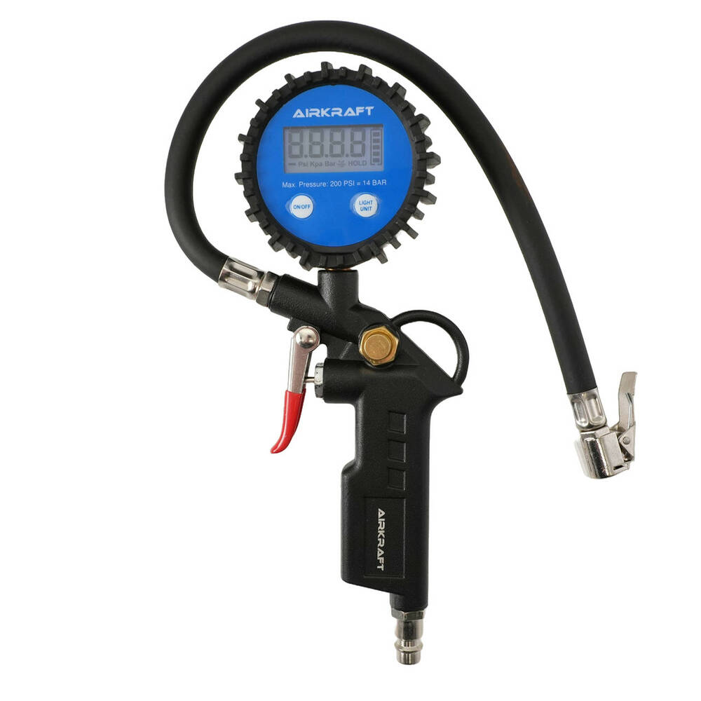 Пистолет для подкачки колес с цифровым манометром AIRKRAFT STG-05D — это профессиональный инструмент, предназначенный для точного измерения и регулирования давления в шинах автомобилей, мотоциклов и других транспортных средств.