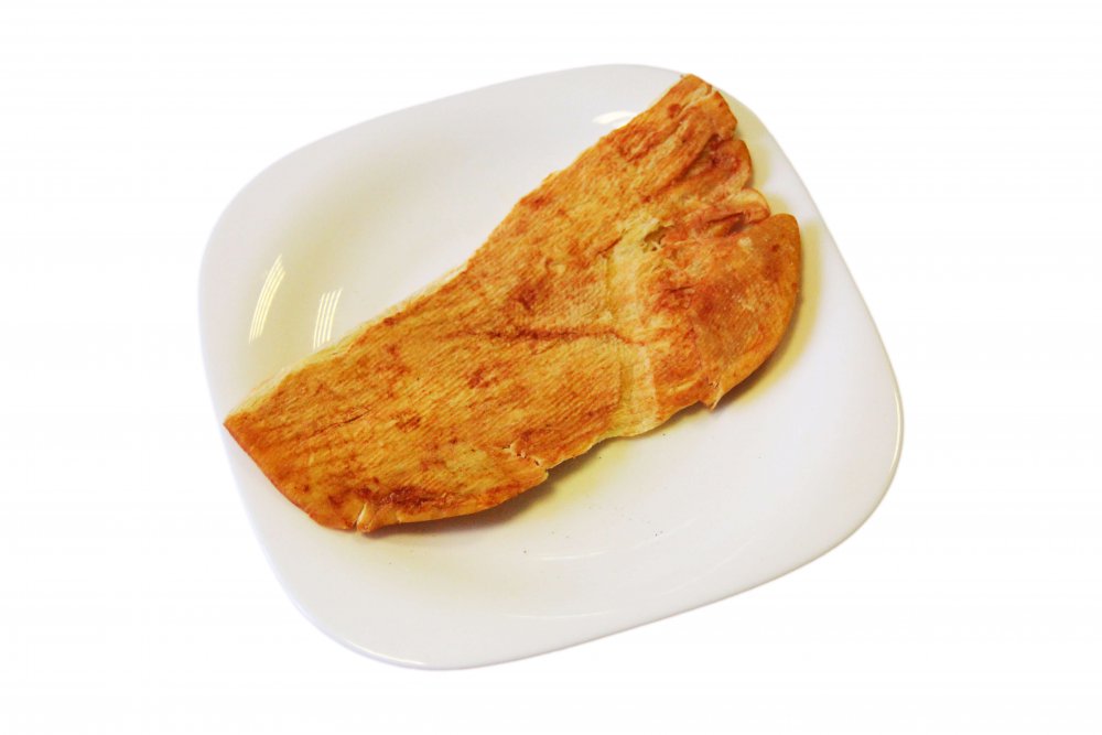 Пласт кальмара, приготовленный посредством просушки и прожарки, свежий и сочный. Приправленное филе кальмара имеет желто-оранжевый цвет. Мясо кальмаров сохраняет свой сладковатый привкус и аромат морепродукта.
