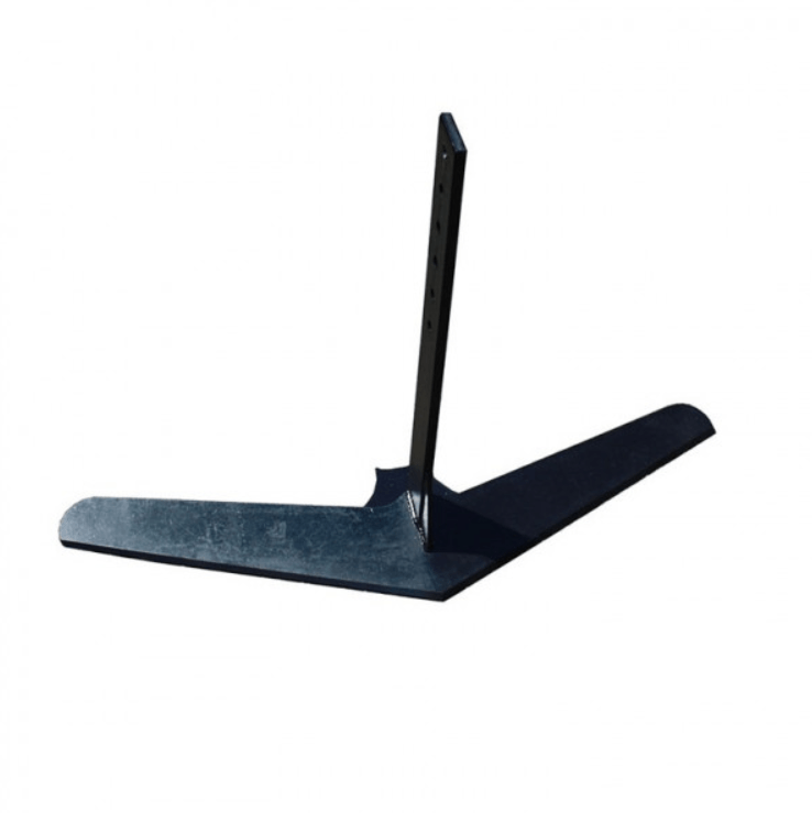 Конструктивно плоскорез представляет собой прочную сварную систему, состоящую из двух остро заточенных ножей (левого и правого) и стойки. Рабочая ширина захвата составляет 700 мм, что позволяет охватывать значительную площадь за один проход и обрабатывать почву быстрее и качественнее. Ножи изготовлены из высококачественной стали толщиной 5 мм, благодаря чему инструмент длительный срок службы и хорошо выдерживает интенсивные нагрузки.