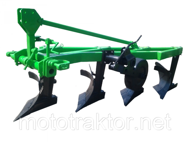 Зміна ширини захоплення дозволяє оптимізувати параметри оранки залежно від стану грунту і тягових можливостей трактора.Плуг 4-х корпусний ПЛН 4-30 до трактора, шириною корпуса 30 см.