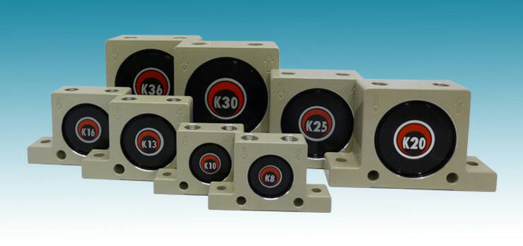 Максимальная температура 100°С (220°F) Пневматически шариковые вибраторы серии К, небольшие по габаритам, их частота может регулироваться подачей воздуха.