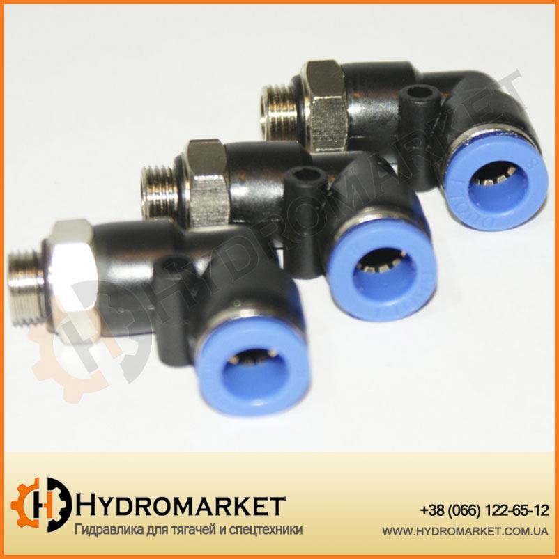 Пневматический уголок 90%  с наружной резьбой. В наличии пневматические соединения разных размеров: