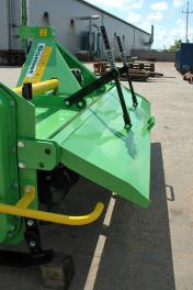 Поднятие кожуха увеличивает размер частиц измельченной почвы, а его опускание вызывает уменьшение частиц измельченной почвы в результате ударения почвы о кожух.