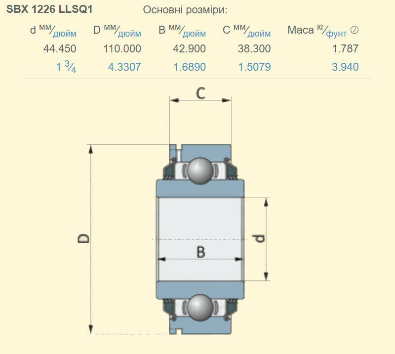 Подшипник борони Case, 193906A1 аналог RMX340, GW212KPP52R-GX, SBX1226LLSQ1