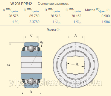 Подшипник с квадратным отверстием Massey Ferguson 447899M1 аналог W208PPB12​