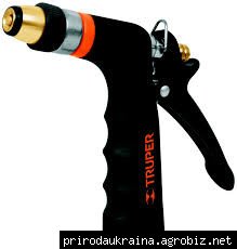 Это насадка, которая крепится на шланг для полива и обеспечивает возможность сверхточного орошения участка. Основное различие между дождевателями и поливочными пистолетами заключается в том, что последние не предназначены для самостоятельной работы. Поливочные пистолеты Truper выполнены из качественного силумина покрытого резино-пластиком, комплектуются универсальными адаптерами и коннекторами, позволяющими без использования дополнительных инструментов, быстро подключить пистолет к системе полива.Поливочные пистолеты можно использовать не только непосредственно для полива, но и, например, для того, чтобы помыть дорожку в саду. Необходимо просто подключить пистолет к шлангу, нажать на клавишу – и начинает течь вода.