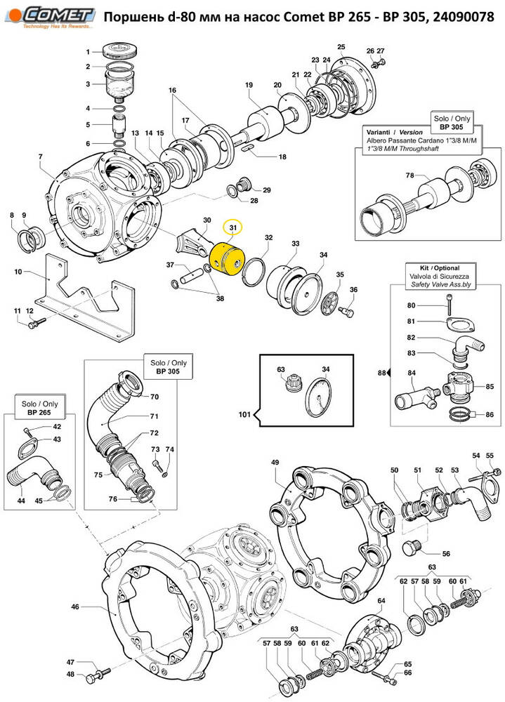 Поршень d-80 мм на насос Comet BP 305, 24090078