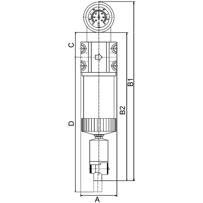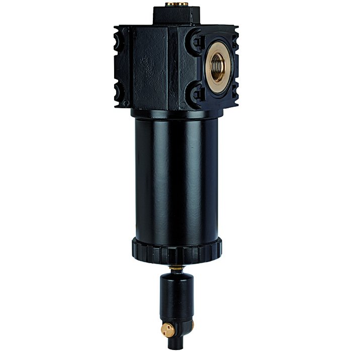 Suitable for all applications where the standard centrifugal separators do not afford the desired efficiency. The pre-filters and micro-filters are equipped with an automatic drain valve. All devices can be supplied with or without a differential pressure gauge. The differential pressure gauge indicates the degree of contamination of the filter element as a function of the pressure drop.