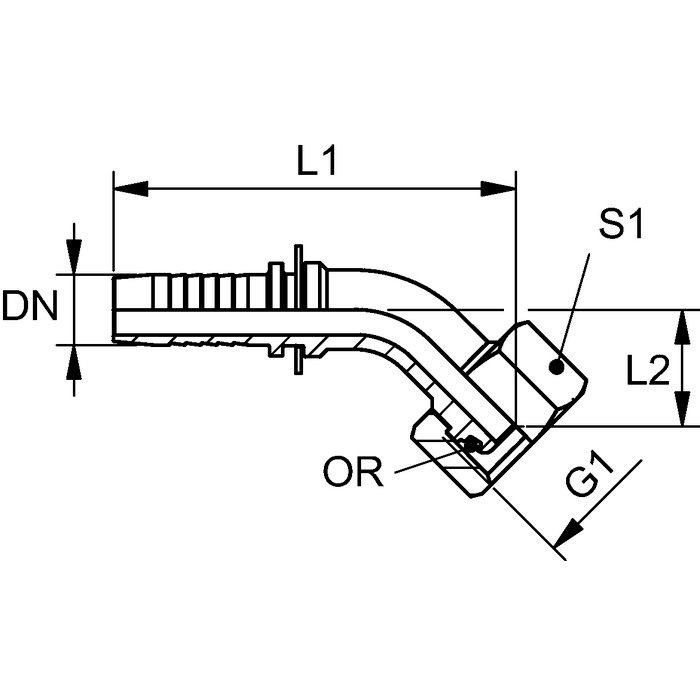 Пресс-ниппель, DKOL, угол 45° - PN AOL 45