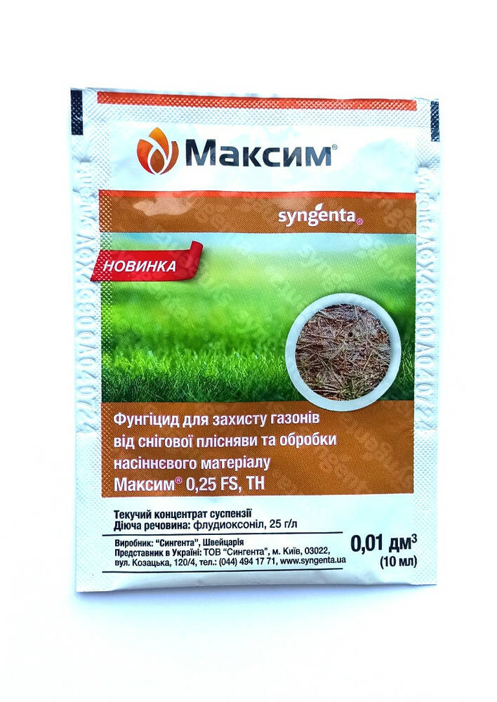 Протравитель Максим 025 FS т.к.с. 10 мл (Syngenta) – это фунгицидный препарат, специально разработанный для обработки посадочного материала перед посадкой (посевом) и закладкой на хранение с целью защиты от грибковых заболеваний.