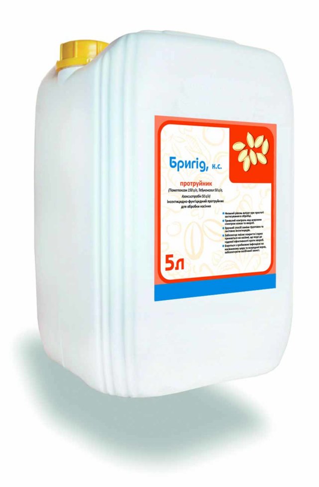 Бригід – високоефективний інсектицидно-фунгіцидний протруйник насіння тривалої дії. Запобігає розвитку багатьох хвороб, грибкових інфекцій та захищає від шкідників під час зберігання, проростання, сходженні і початковому розвитку культур. Добре покриває насіння і тримається на ньому покращує якість та кількість врожаю. Безпечний для персоналу та навколишнього середовища. Рекомендований для зернових, кукурудзи, соняшнику.