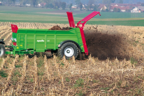 Конструкция разбрасывателей APOLLO с колесной базой, которая базируется на одной оси и больших колесах, снижает требуемую мощность на 20% по сравнению с традиционной колесной базой и облегчает проходимость на неровных и влажных поверхностях. Большие колеса уменьшают давление на поверхность почвы. Широкий выбор доступных адаптеров и бункеров от 5,5 до 18 тонн позволяет оптимально подобрать разбрасыватели согласно требованиям хозяйств.