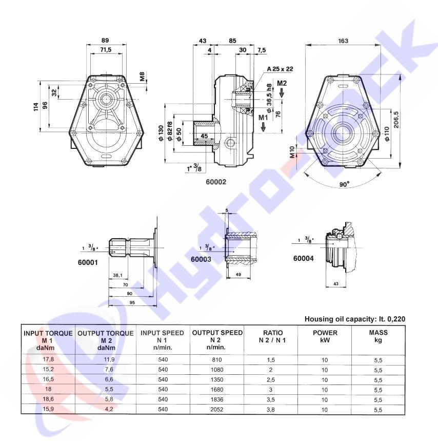 Редукторы предназначены для подключения шестеренных насосов к коробкам отбора мощности трактора. Входная скорость коробок отбора мощности составляет 540 об / мин, и ее следует отрегулировать в соответствии с надлежащими скоростями работы гидравлических насосов. Различные входные скорости также могут быть подходящими, при условии, что выходная скорость вращения вне передачи не превышает 3000 об / мин. Hidros предлагает насосы серии 60000, пригодные для использования с гидравлическими насосами группы 20.
