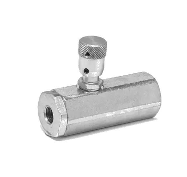 Корпус регулятора расхода 2х линейного изготовлен из оцинкованной стали. Внутренние компоненты – закаленная сталь. Тип монтажа – трубный. Уплотнение – BUNA N standard. Регулировка происходит путем вращения металлической ручки. Максимальная пропускная способность с А в В составляет 28 л/мин, а с В в А – 45 л/мин. Максимальное давление – 250 бар.
