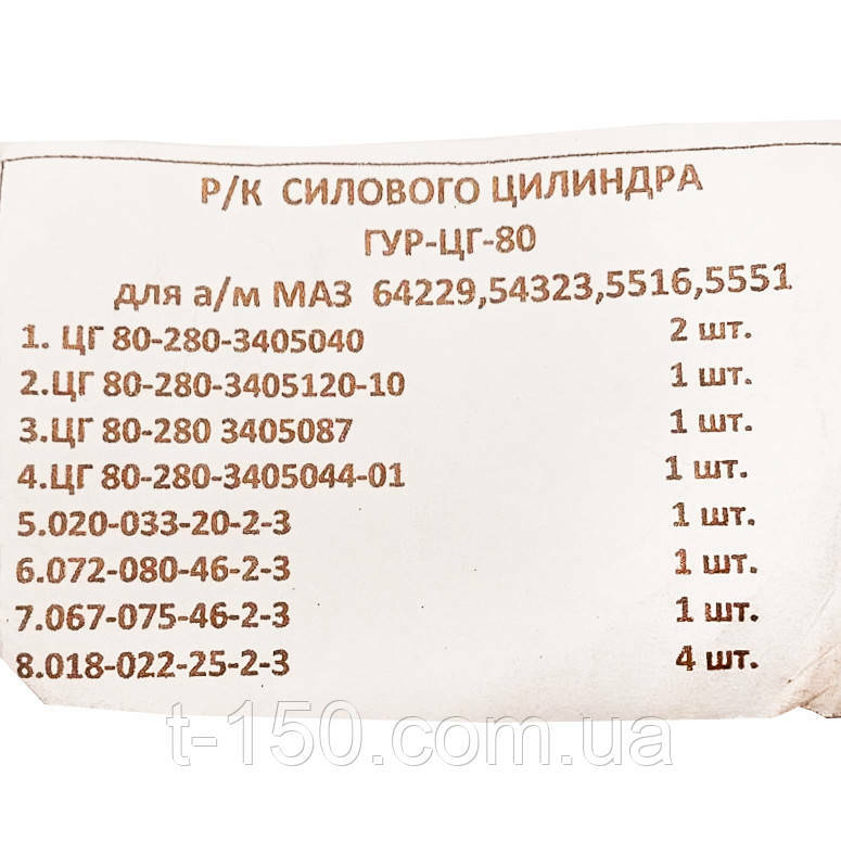 Ремкомплект гидроцилиндра ГУР (силового) ЦГ-80 МАЗ-64229/54323/5516/5551